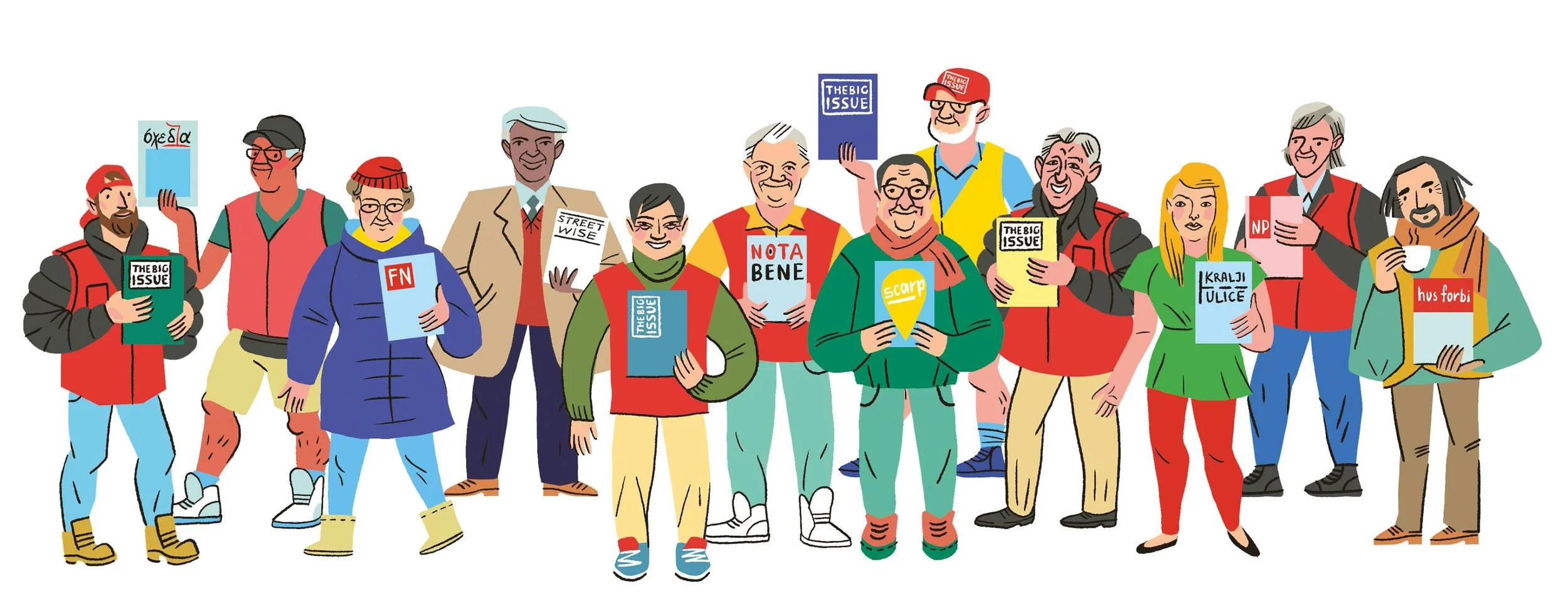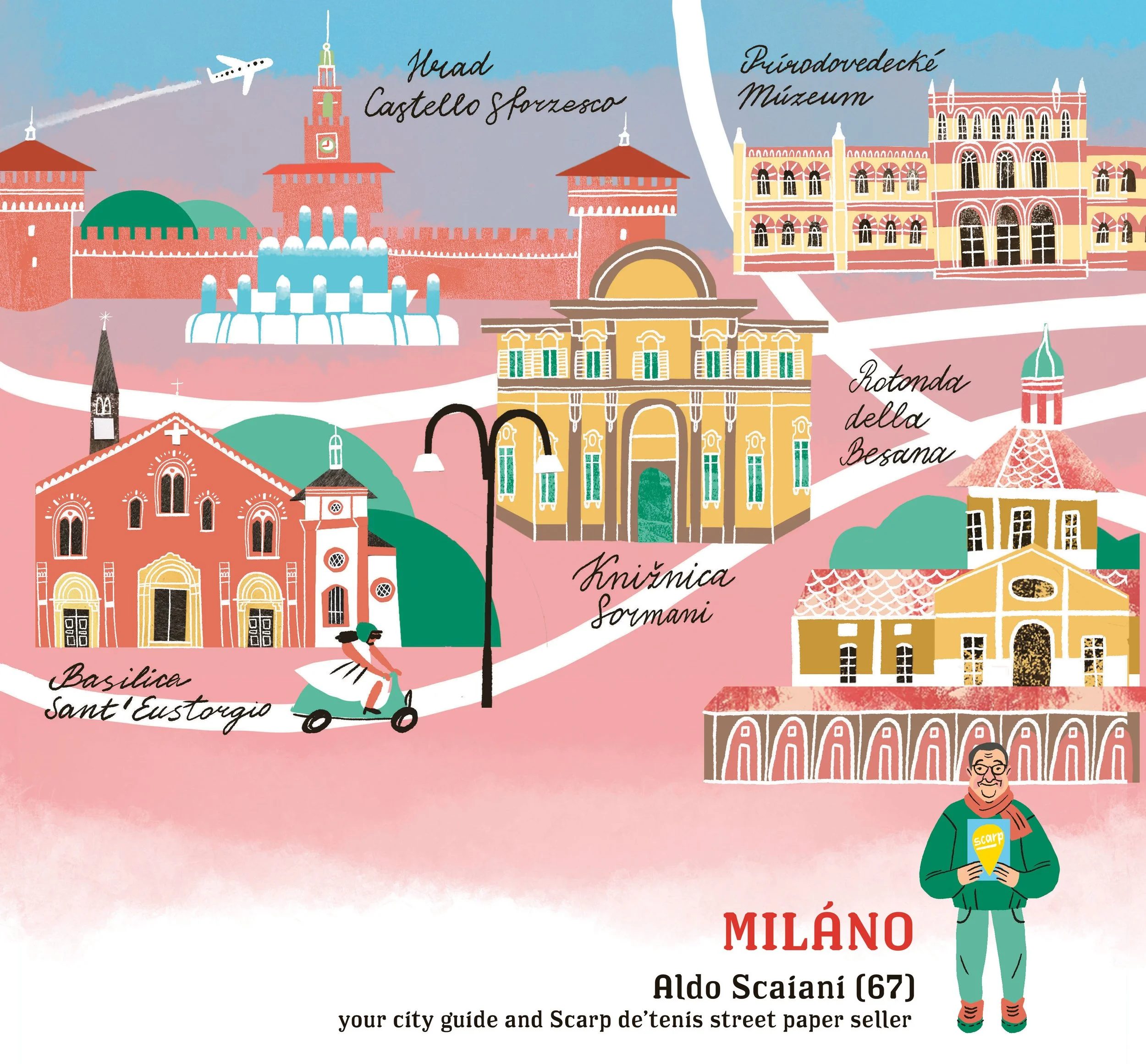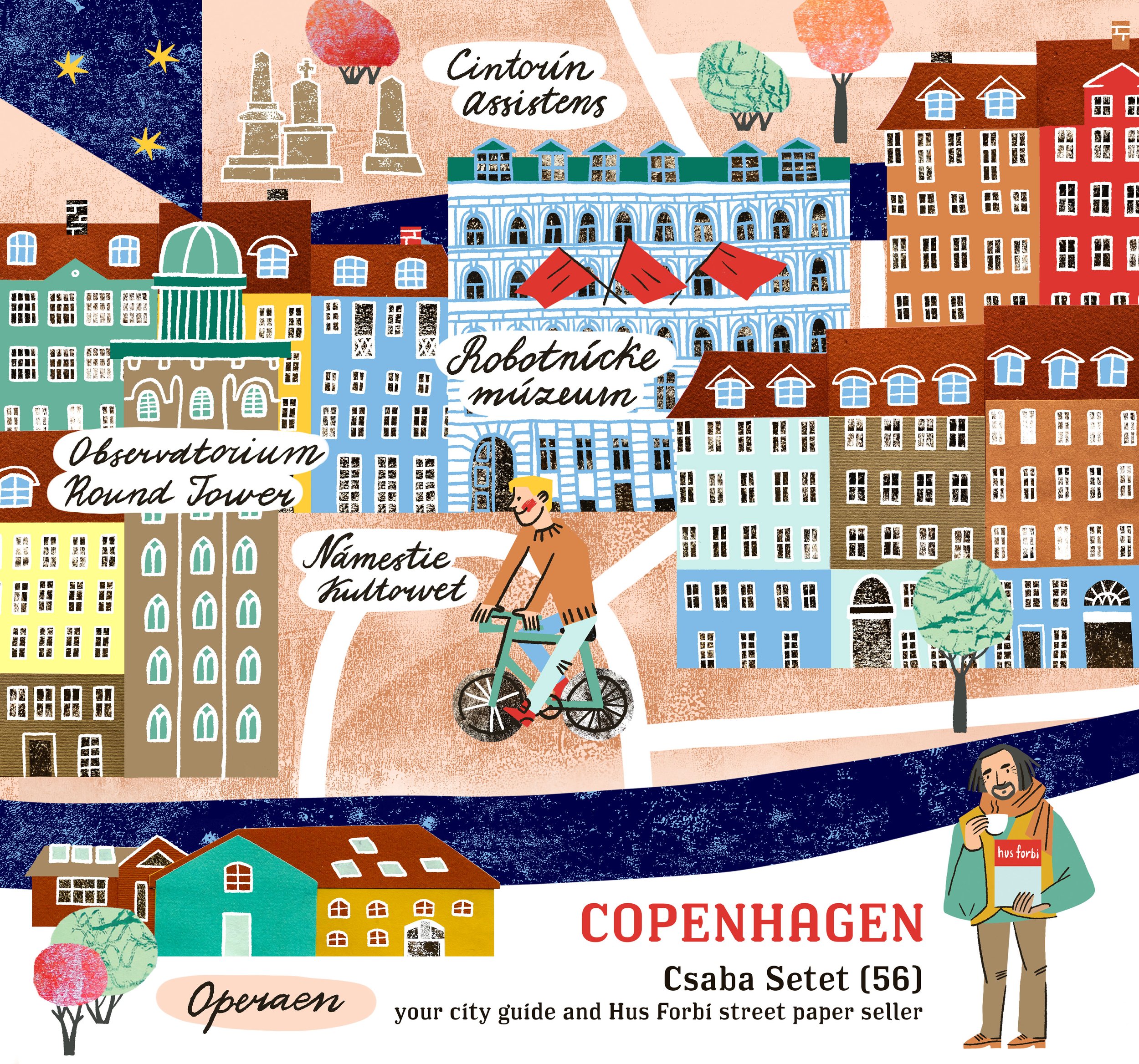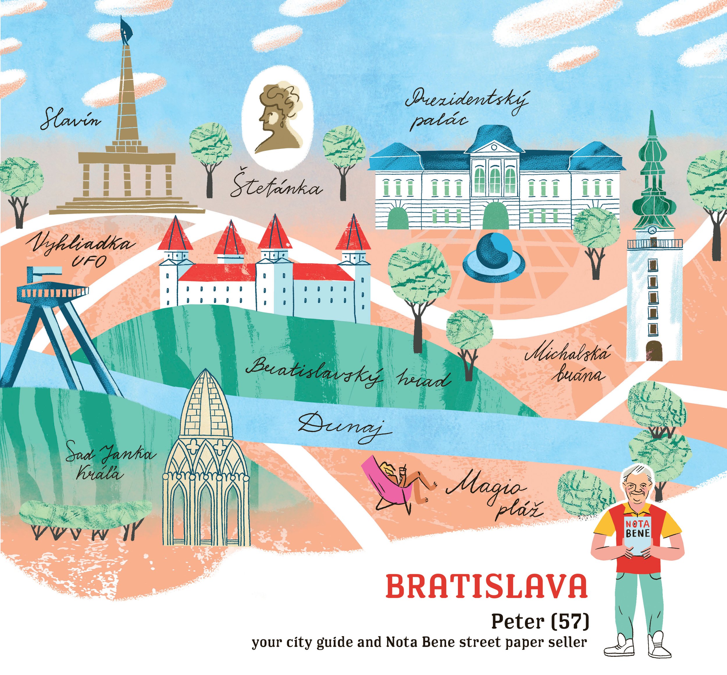 For Slovak street paper NOTA BENE I illustrated 12 cities for their annual calendar. Each month - a different city and a street guide from a local street paper vendor.