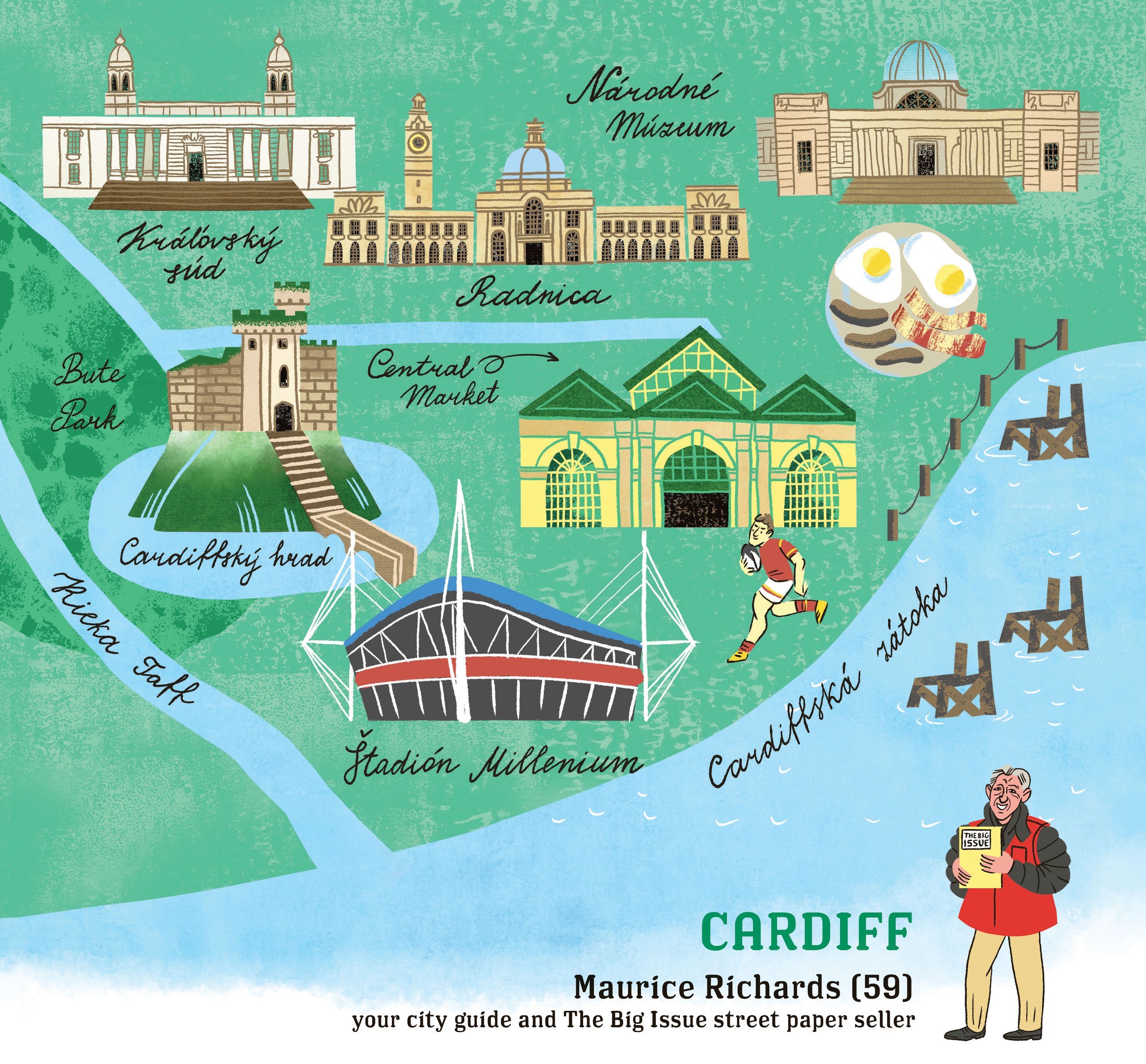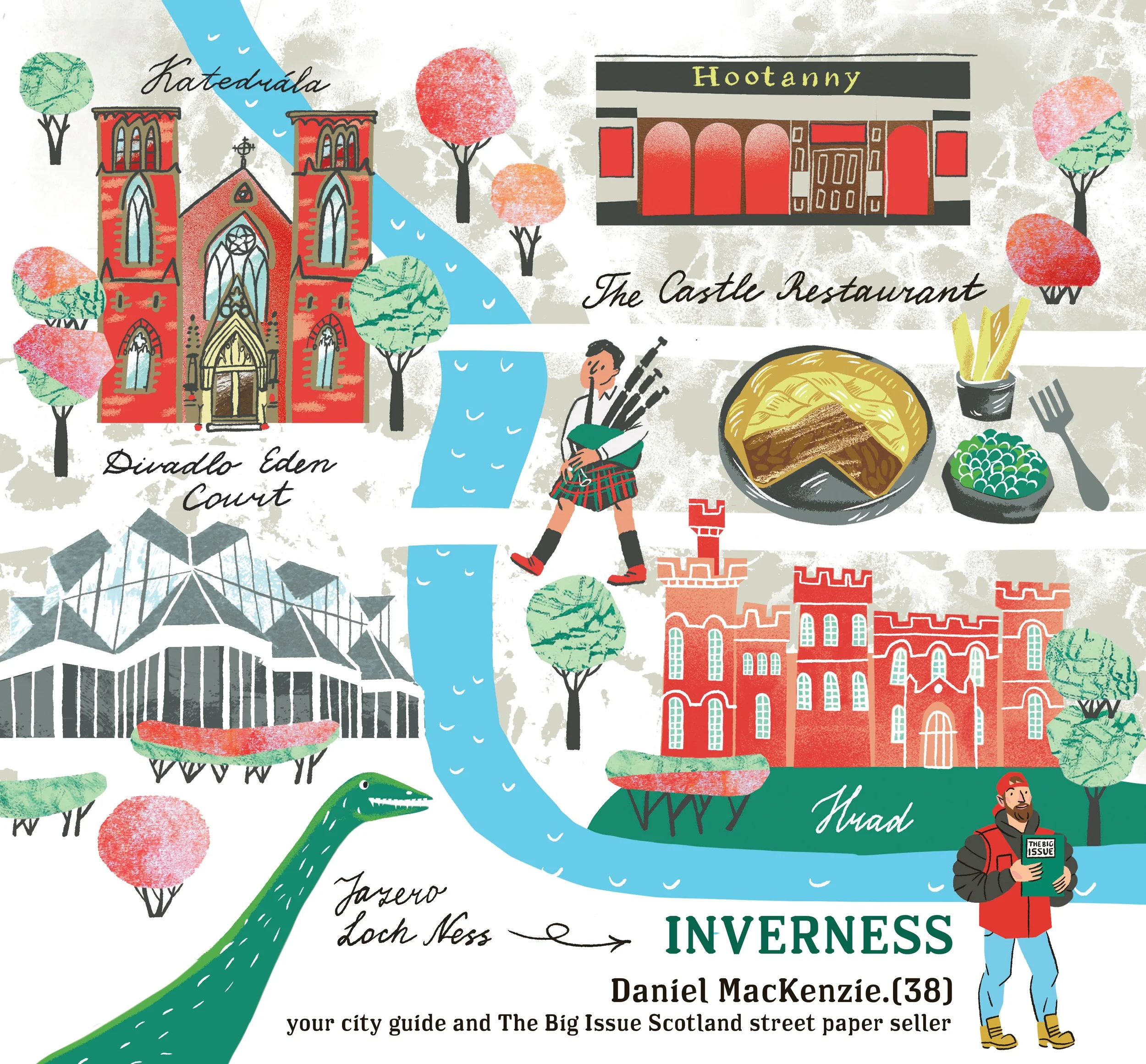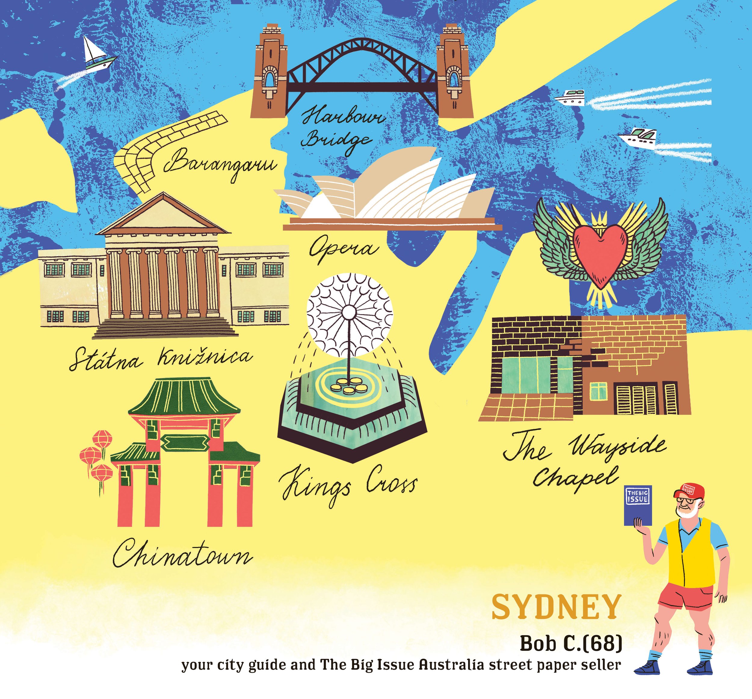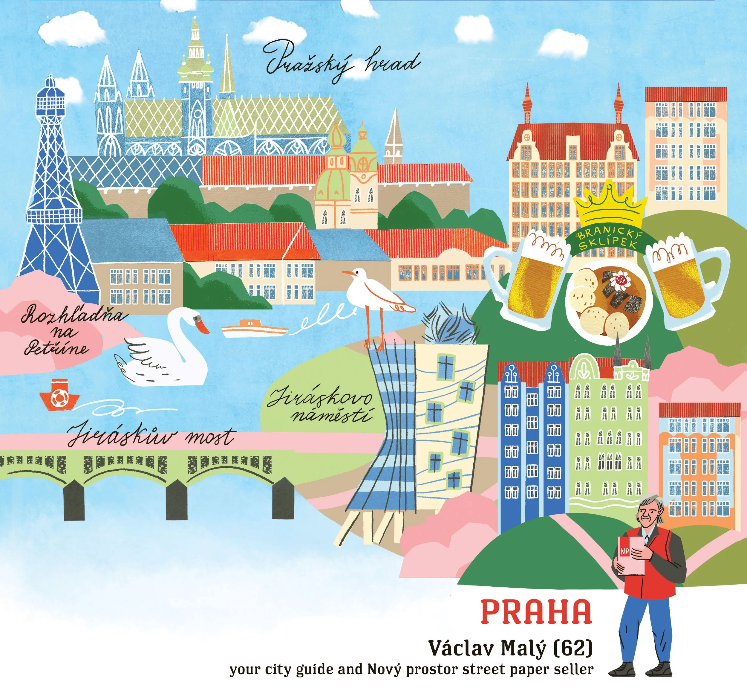 For Slovak street paper NOTA BENE I illustrated 12 cities for their annual calendar. Each month - a different city and a street guide from a local street paper vendor.