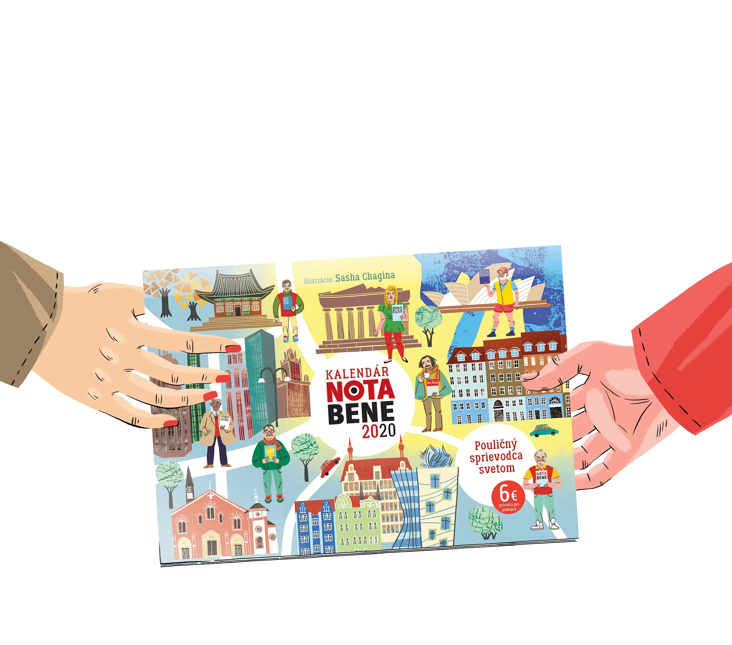 Do ročního kalendáře slovenského pouličního časopisu NOTA BENE jsem nakreslila 12 měst. Každý měsíc - jiné město a průvodce ulicemi od místního prodejce pouličních novin.