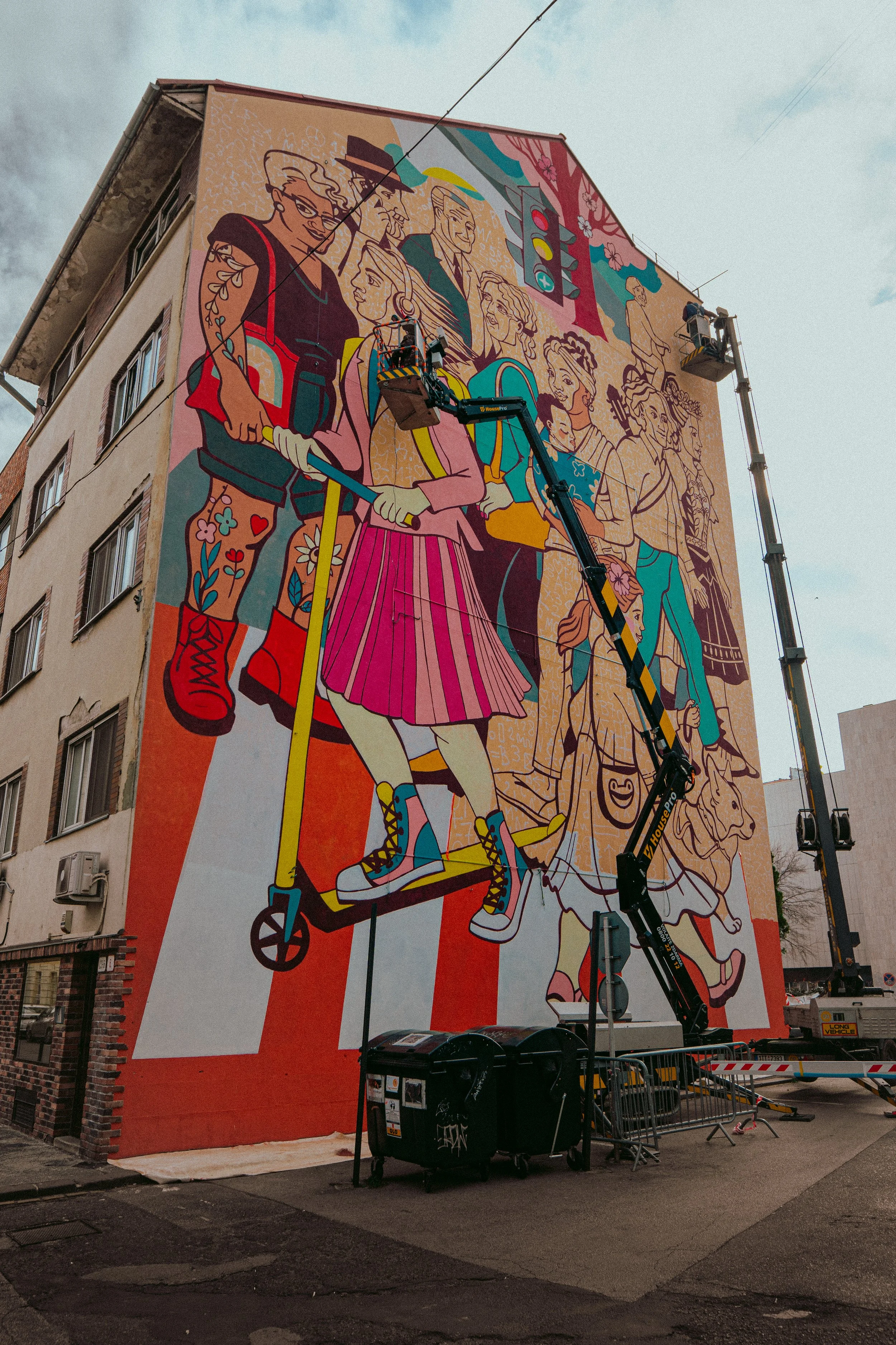I was extremely lucky to work with Jano Wajcko Vajsábel who, along with his team, brought the mural to life. It took 15 days, a team of 4 people and 60 litres of paints in 17 shades to create a 270 m2 mural.